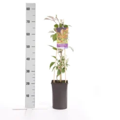 Wisteria sinensis ‘Caroline’ is een blauweregen met lilapaarse bloemen aan grote hangende trossen, die heerlijk geuren. De bloei is in mei-juni.