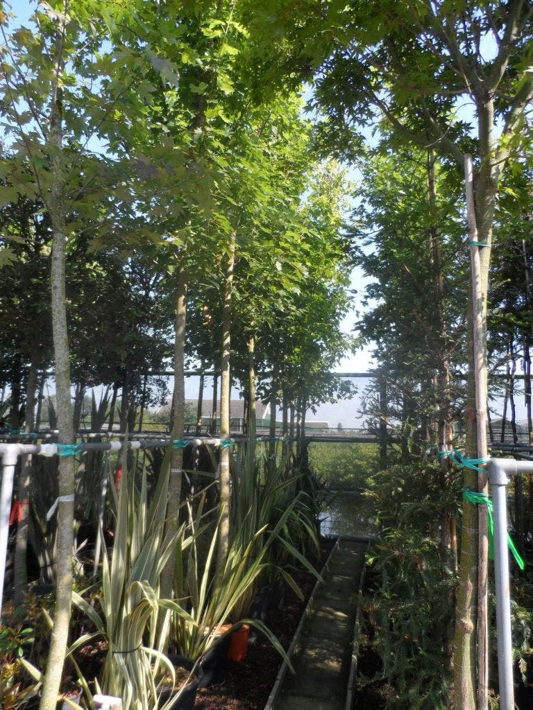 Acer freemanii ‘Autumn Blaze’ is een geschikte straatboom, omdat hij de tegels niet omhoog duwt met zijn wortels.